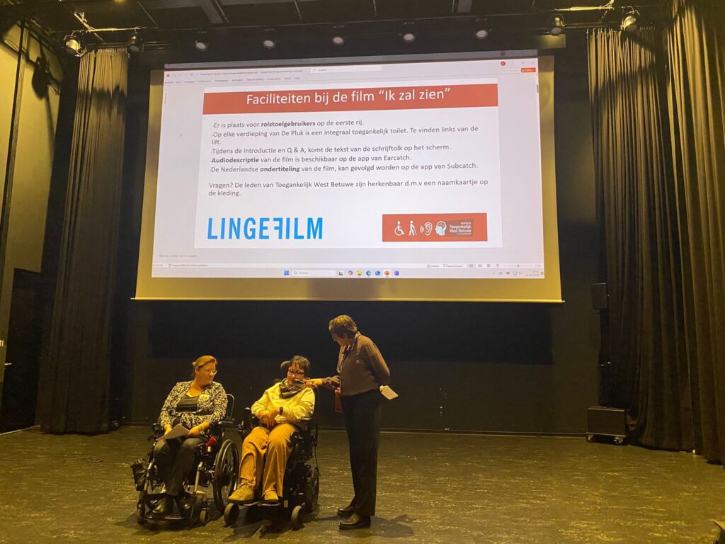 Verder in die mooie avond vertoonden we in samenwerking met Lingfilm De film “Ik zal zien” over de levenslustige Lot die door een ongeluk blind wordt waarna haar wereld abrupt tot stilstand komt. Haar plannen om met haar vriendje Casper te gaan reizen, studeren, duiken en samenwonen, lijken in te storten. Lot verzet zich fel tegen haar nieuwe hulpbehoevendheid en probeert aan haar pijnlijke realiteit te ontsnappen door zoveel mogelijk te dromen. Voor de film werd een korte Q&A gehouden met vragen met betrekking tot het platform door Esther den Breejen, vrijwilliger bij Lingefilm. Ik heb samen met nog een ander van het platform zo goed mogelijk deze vragen beantwoord. Wat was dit leuk om te doen.